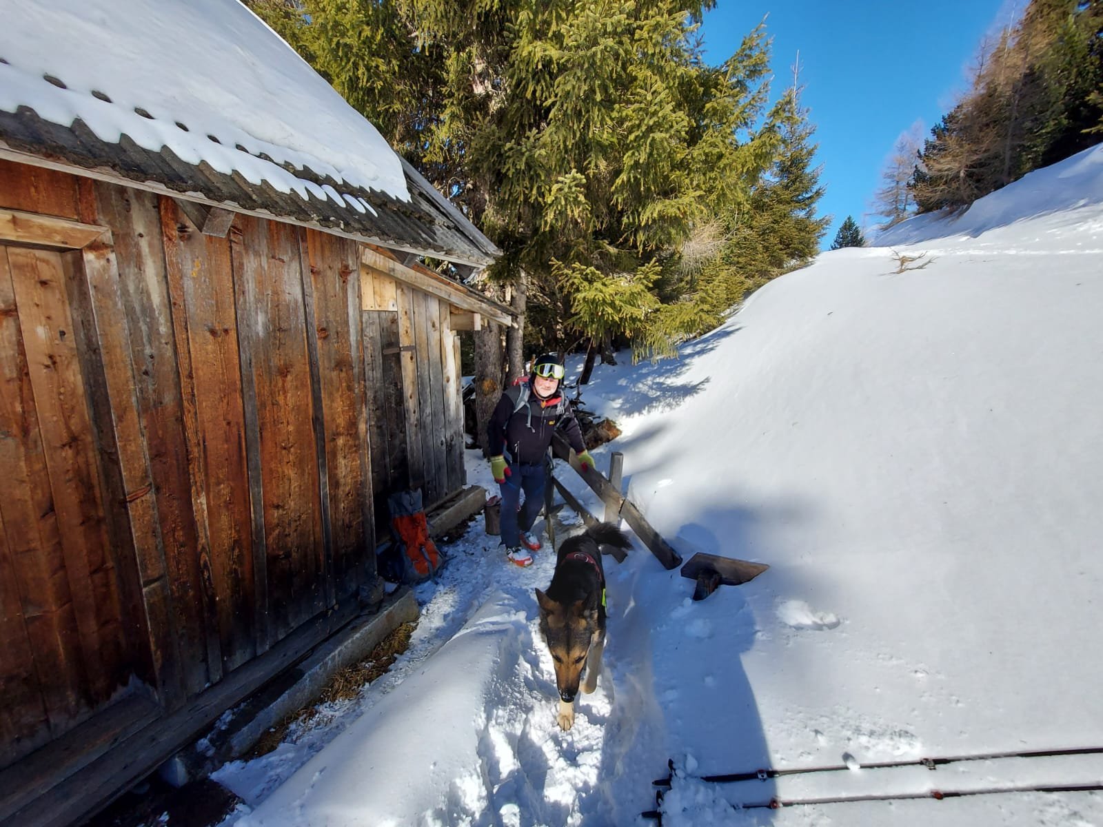 Obwohl heute extrem starker Wind vorausgesagt war, haben wir uns die Allerleigrubenspitze vorgenommen. Wir konnten direkt vom Haus starten, wenn wir raufzu die geringe Schneeauflage auf der Forststraße in Kauf nahmen. Hinunter bin ich über den Obernberger See abgefahren, um ordentlich Schnee zu haben.